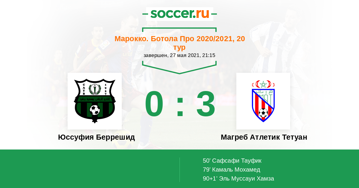 Юссуфия Беррешид - Магреб Атлетик Тетуан: обзор матча 27 мая 2021