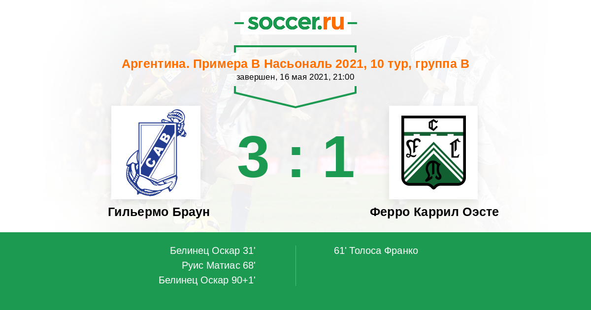 Гильермо Браун - Ферро Каррил Оэсте: обзор матча 16 мая 2021