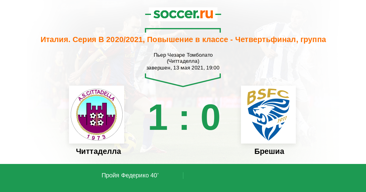 Читтаделла - Брешиа: обзор матча 13 мая 2021