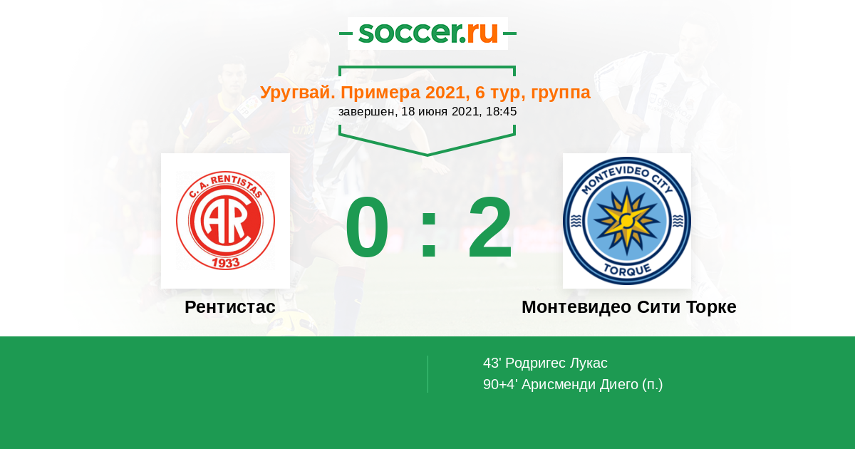 Рентистас - Монтевидео Сити Торке: обзор матча 18 июня 2021