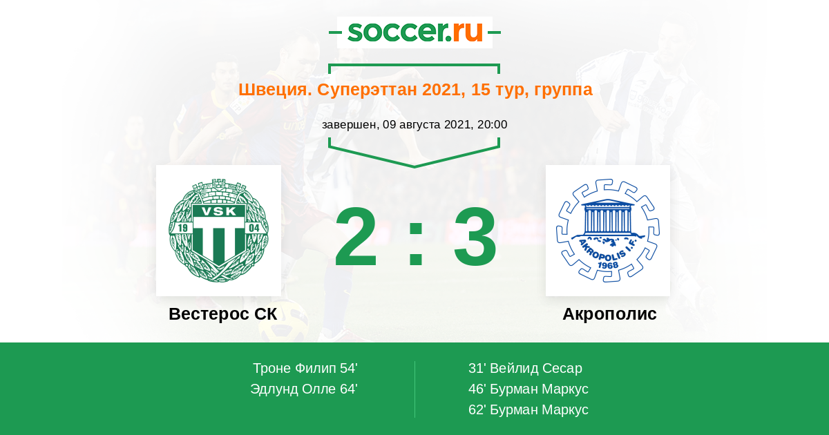 Вестерос СК - Акрополис: обзор матча 9 августа 2021