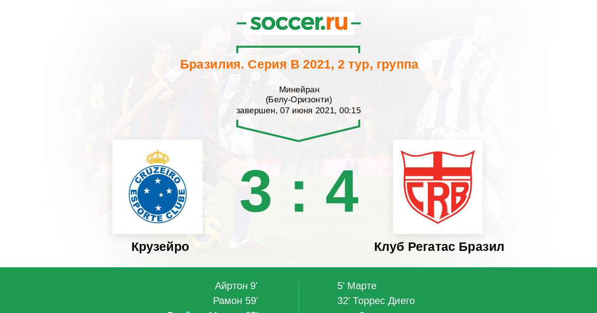 Крузейро - Клуб Регатас Бразил: обзор матча 7 июня 2021