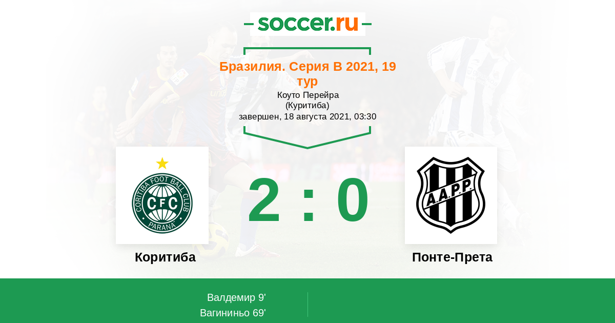 Коритиба - Понте-Прета: обзор матча 18 августа 2021
