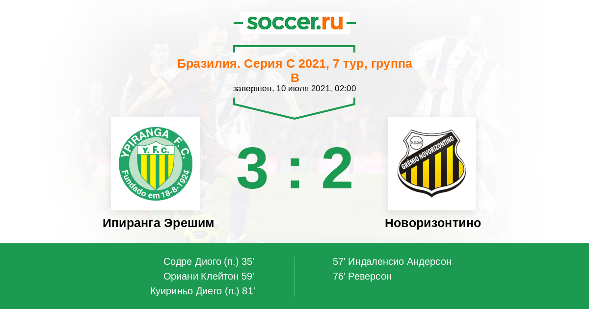 Ипиранга Эрешим - Новоризонтино: обзор матча 10 июля 2021