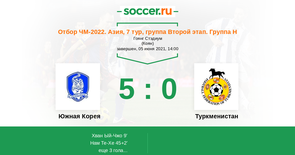 Южная Корея - Туркменистан: обзор матча 5 июня 2021