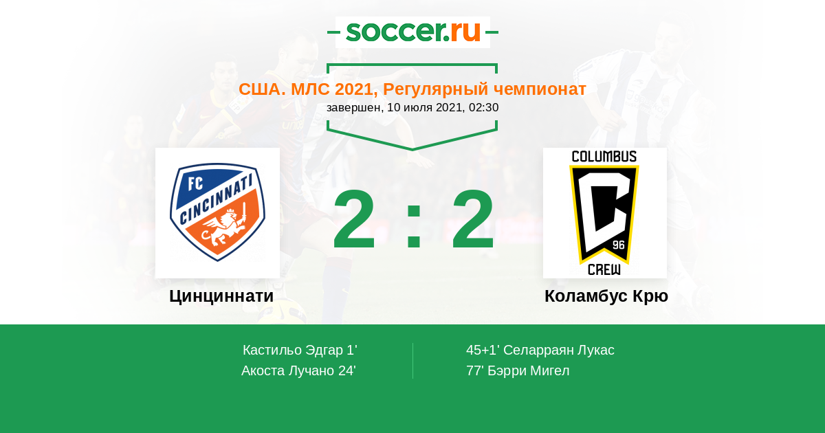 Цинциннати - Коламбус Крю: обзор матча 10 июля 2021