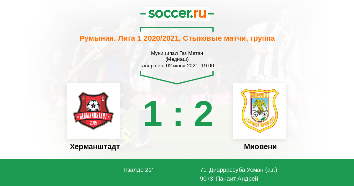 Херманштадт - Миовени: обзор матча 2 июня 2021