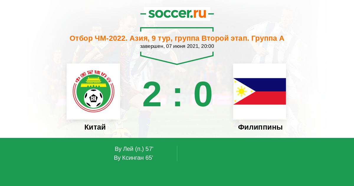 Китай - Филиппины: обзор матча 7 июня 2021