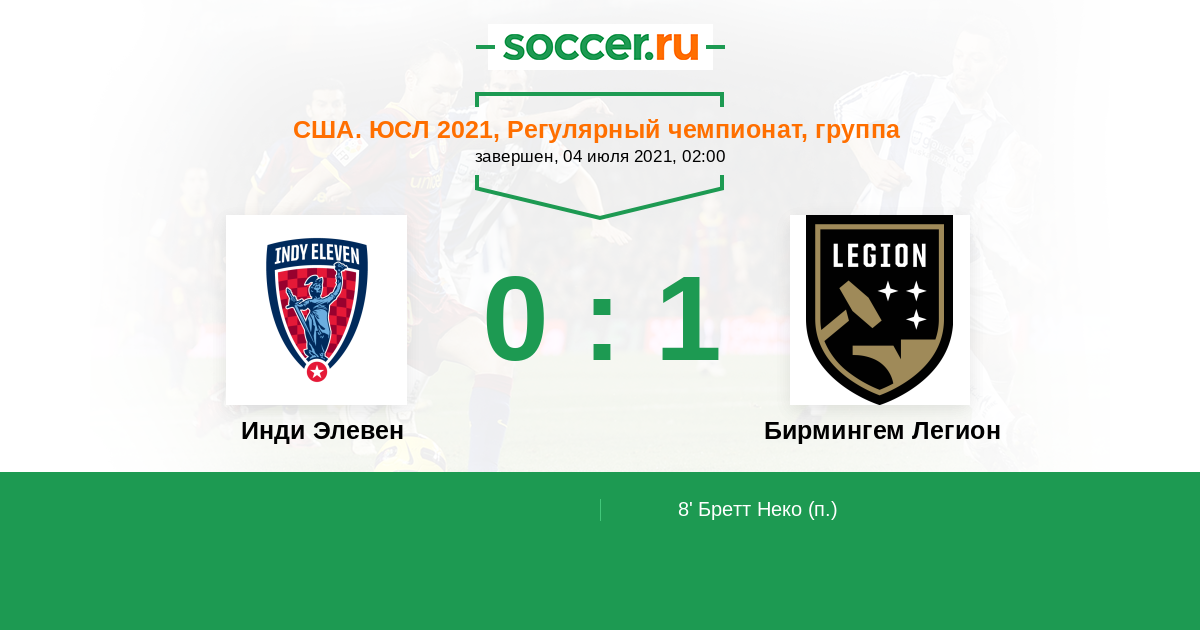 Инди Элевен - Бирмингем Легион: обзор матча 4 июля 2021