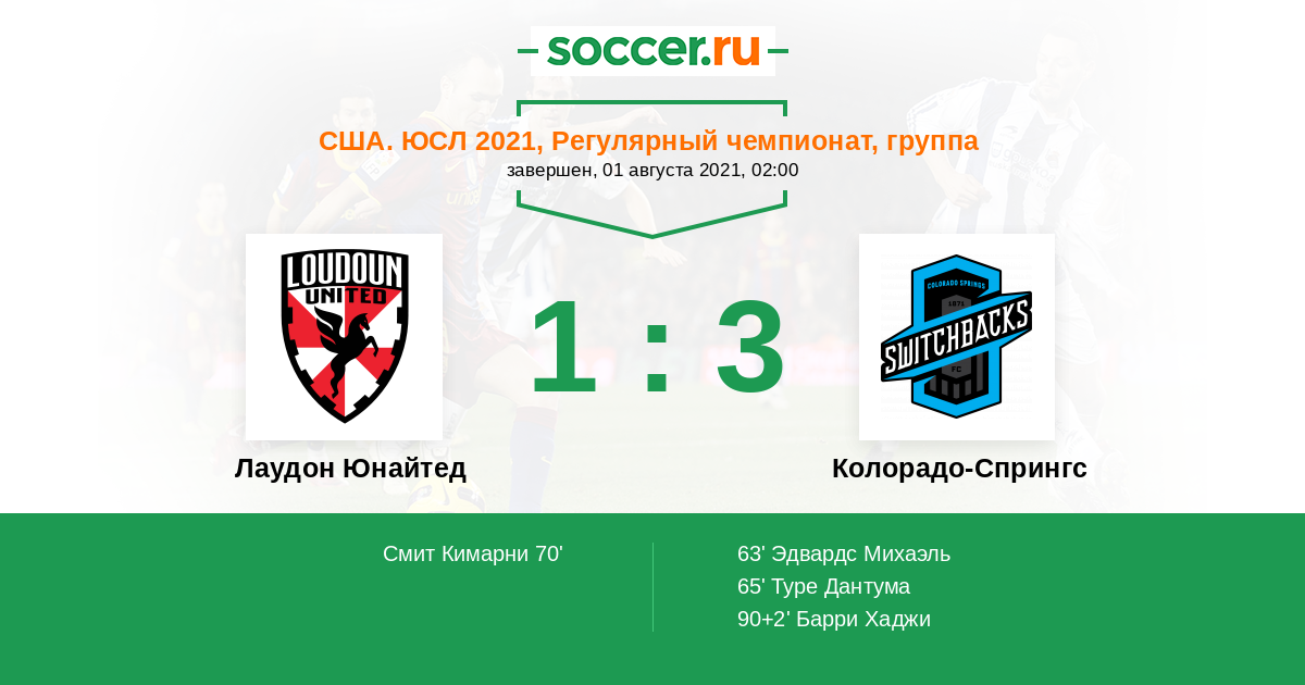 Лаудон Юнайтед - Колорадо-Спрингс: обзор матча 1 августа 2021