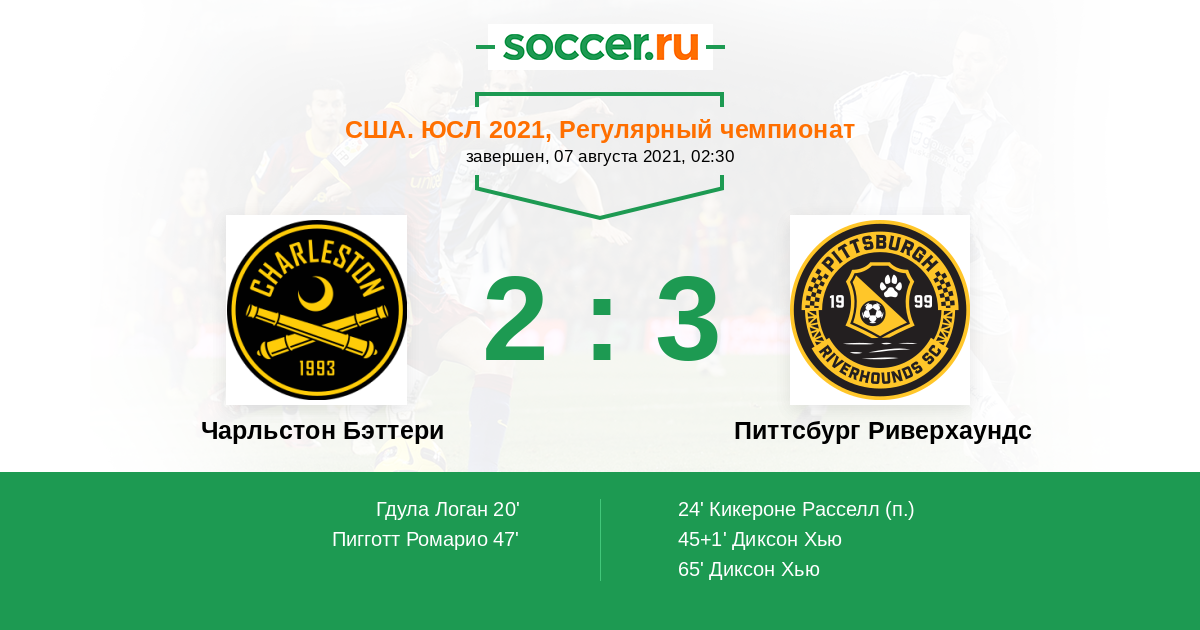 Чарльстон Бэттери - Питтсбург Риверхаундс: обзор матча 7 августа 2021