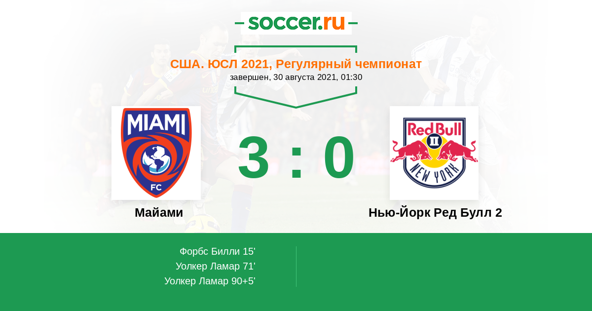 Майами - Нью-Йорк Ред Булл 2: обзор матча 30 августа 2021