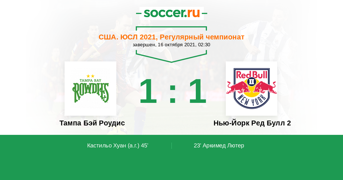 Тампа Бэй Роудис - Нью-Йорк Ред Булл 2: обзор матча 16 октября 2021