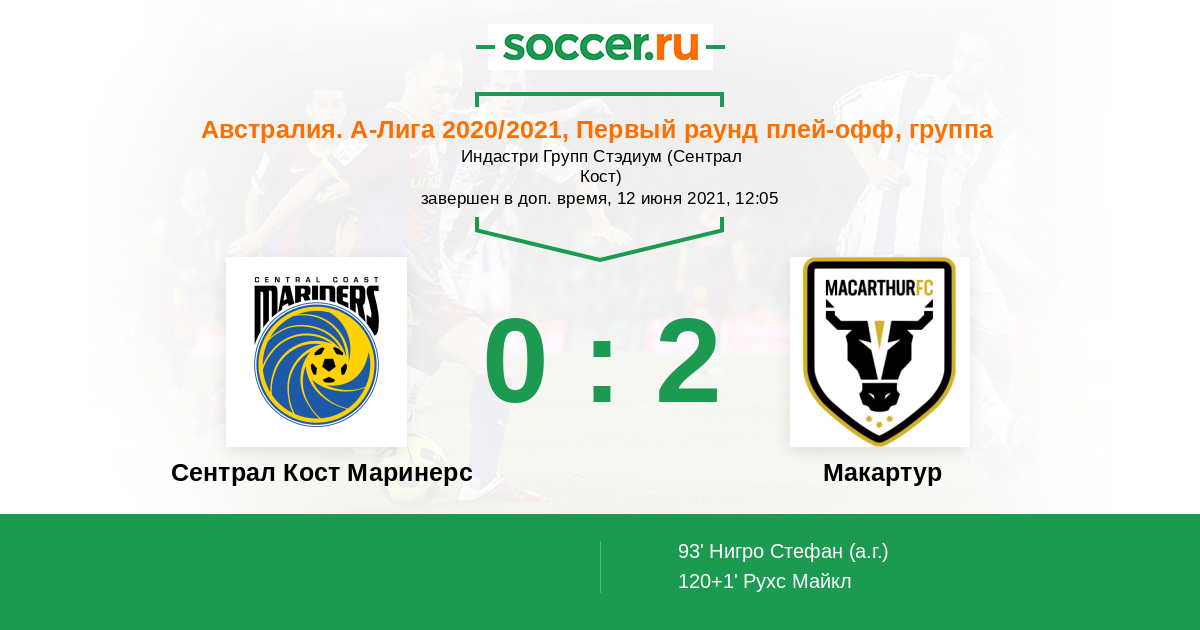 Сентрал Кост Маринерс - Макартур: обзор матча 12 июня 2021