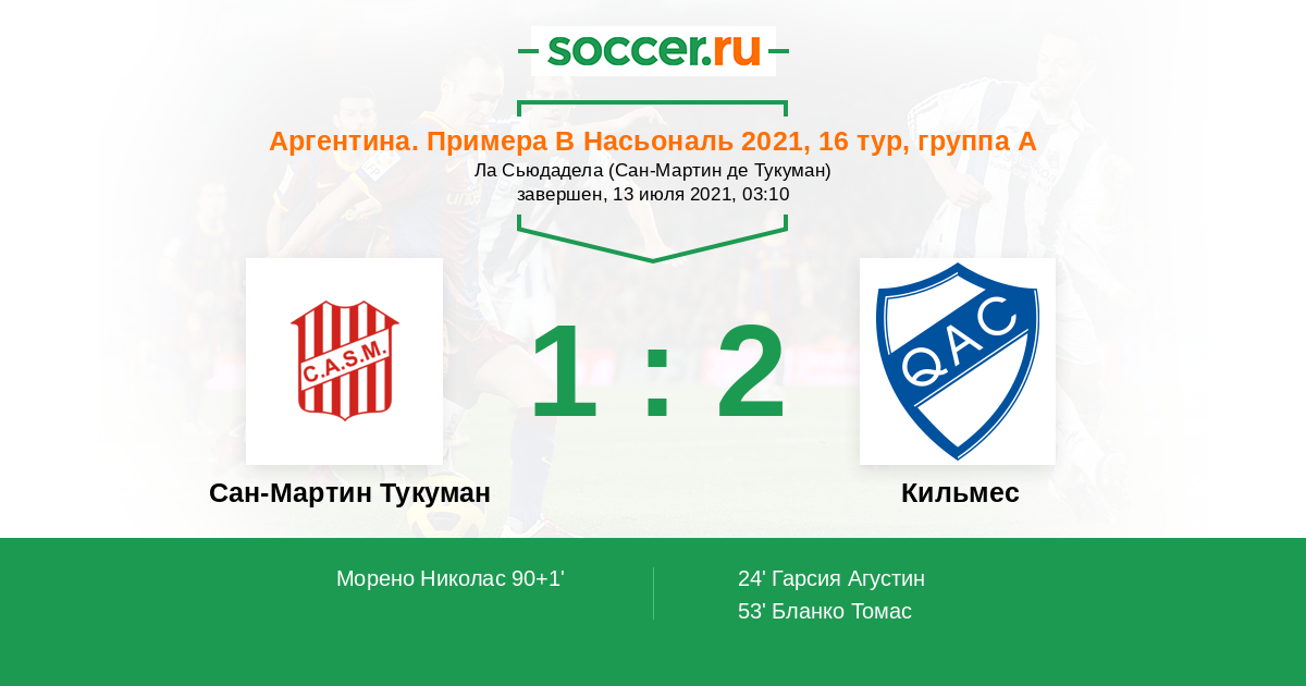 Сан-Мартин Тукуман - Кильмес: обзор матча 13 июля 2021