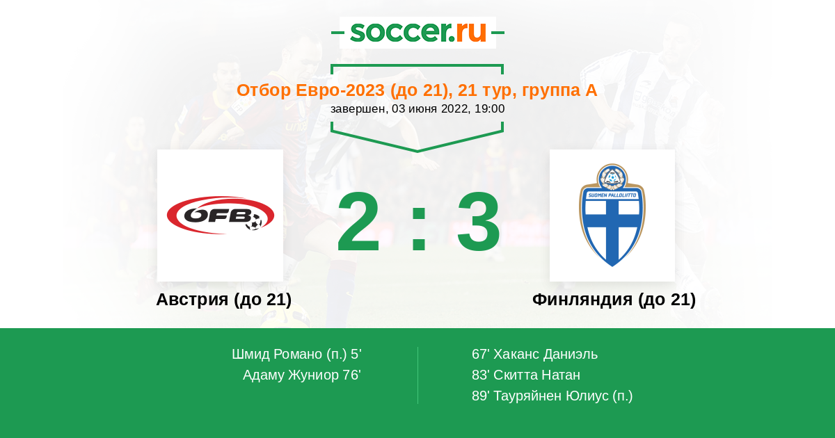 Австрия (до 21) - Финляндия (до 21): обзор матча 3 июня 2022