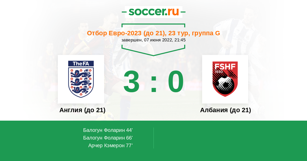 Англия (до 21) - Албания (до 21): обзор матча 7 июня 2022
