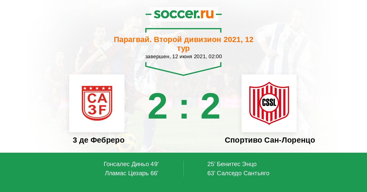 3 де Фебреро - Спортиво Сан-Лоренцо: обзор матча 12 июня 2021