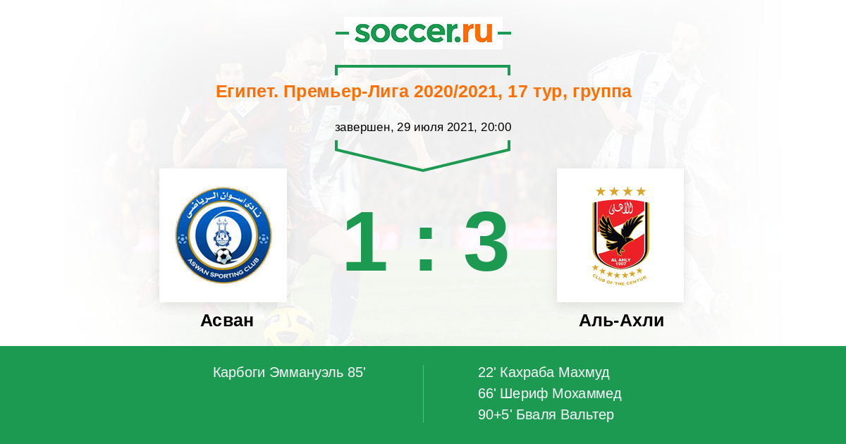 Асван - Аль-Ахли: обзор матча 29 июля 2021