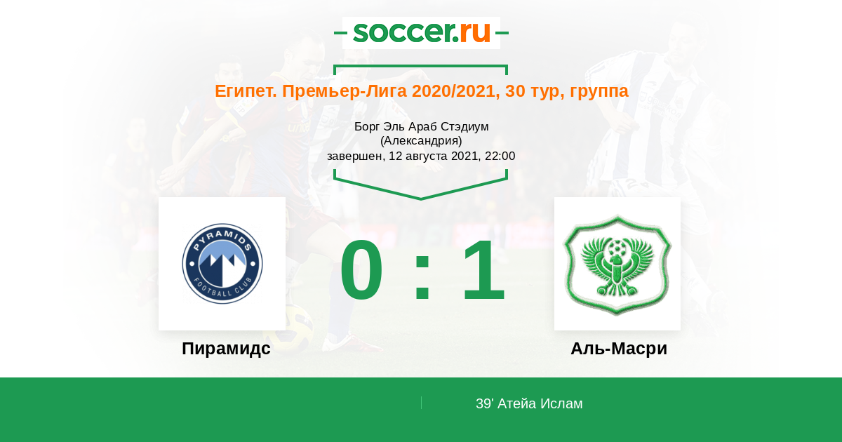 Пирамидс - Аль-Масри: обзор матча 12 августа 2021
