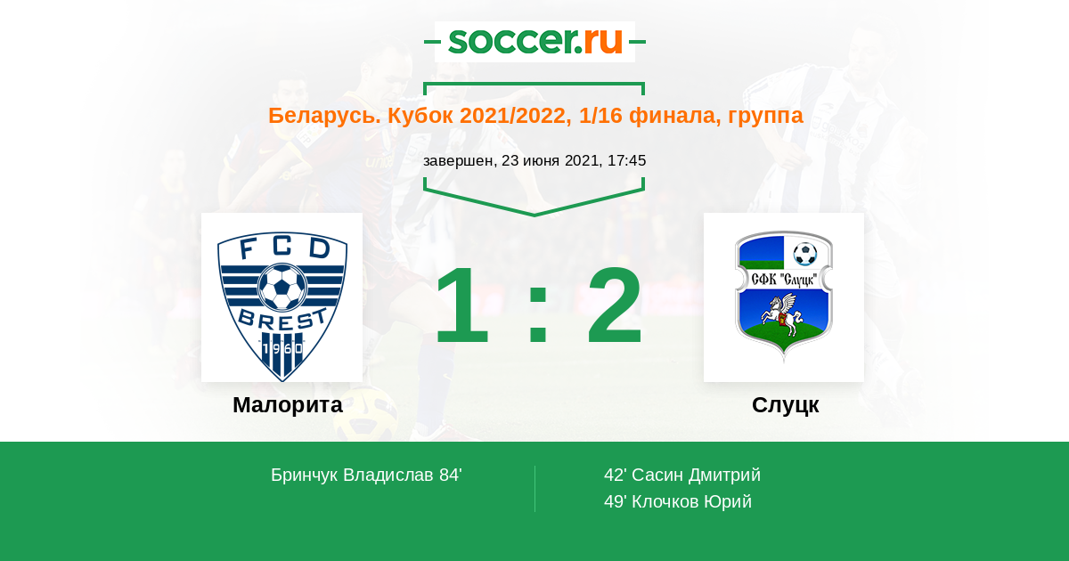 Малорита - Слуцк: обзор матча 23 июня 2021