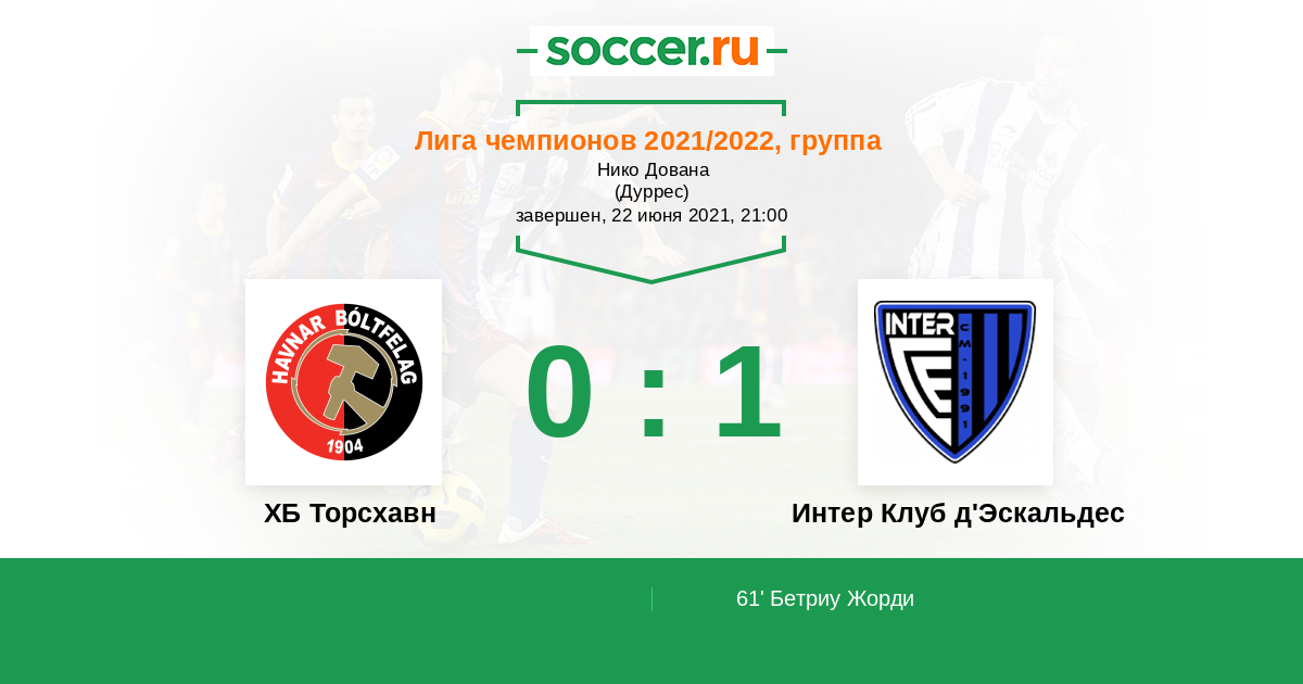 ХБ Торсхавн - Интер Клуб д'Эскальдес: обзор матча 22 июня 2021