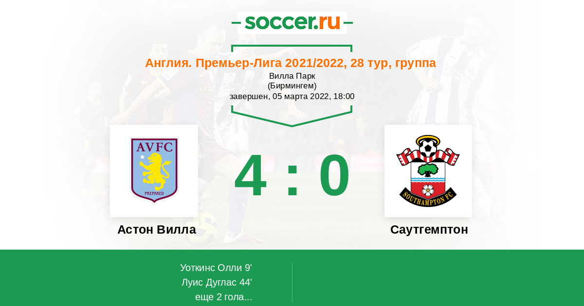 Астон Вилла - Саутгемптон: обзор матча 5 марта 2022