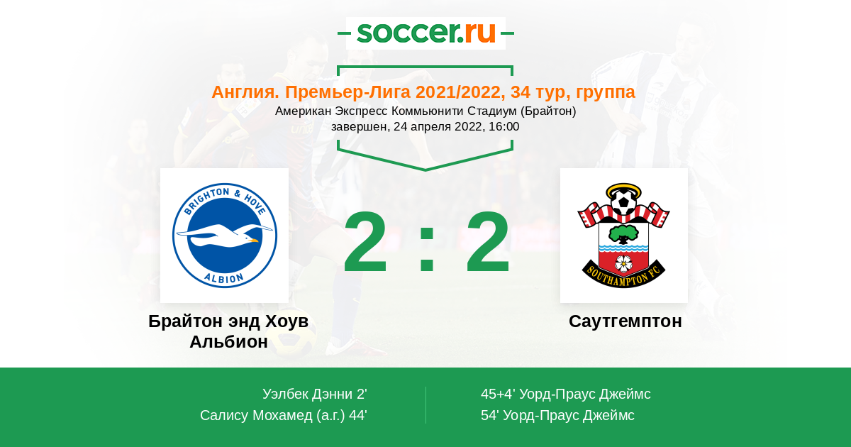Брайтон энд Хоув Альбион - Саутгемптон: обзор матча 24 апреля 2022