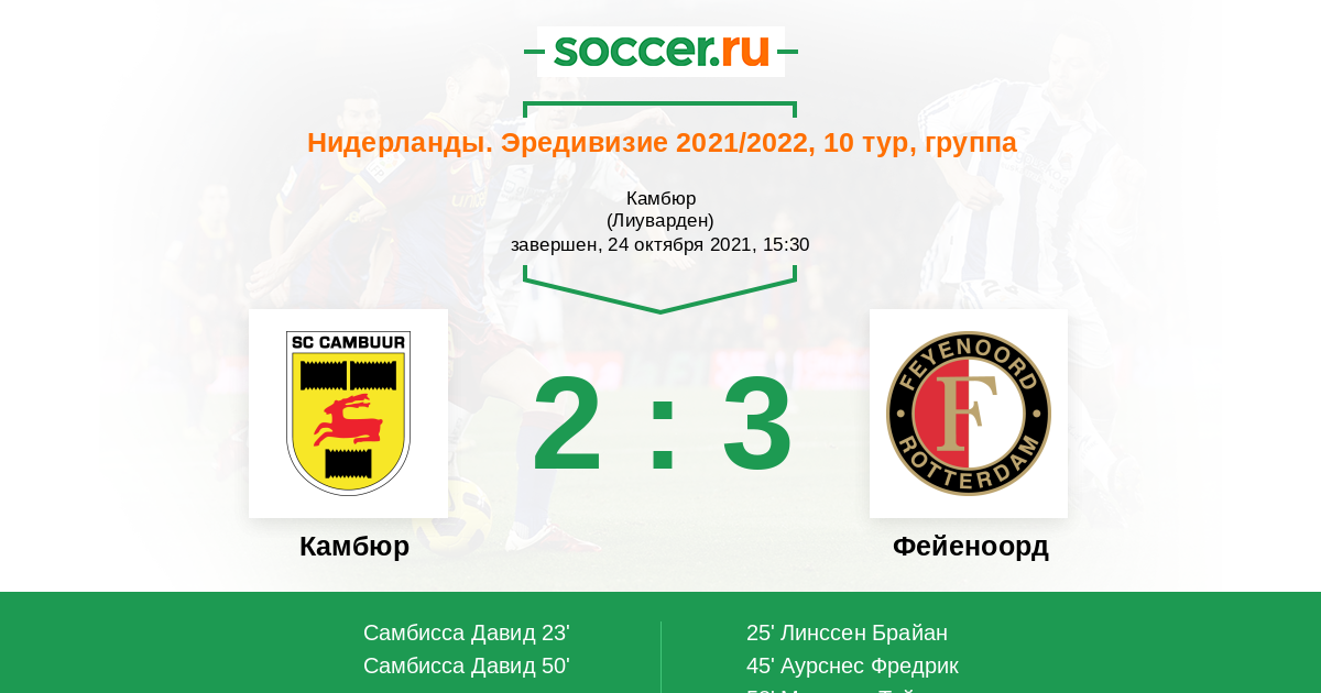 Камбюр - Фейеноорд: обзор матча 24 октября 2021