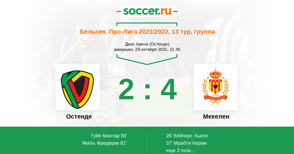 Остенде - Мехелен: обзор матча 29 октября 2021