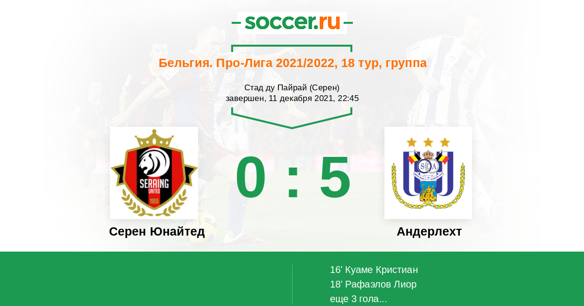 Серен Юнайтед - Андерлехт: обзор матча 11 декабря 2021
