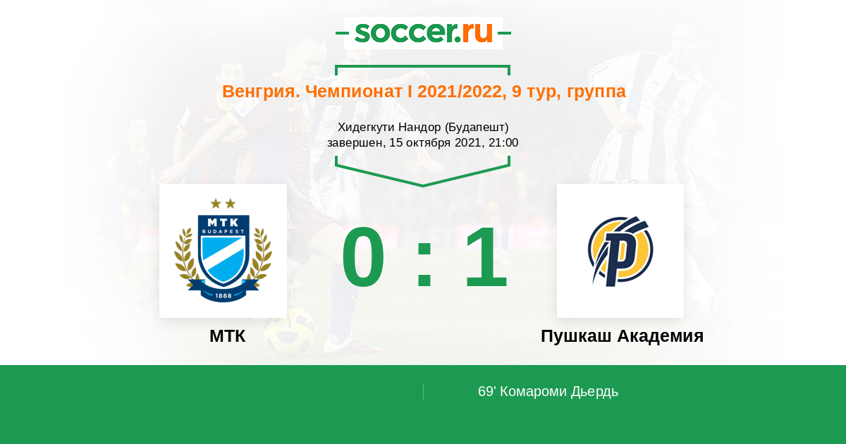 МТК - Пушкаш Академия: обзор матча 15 октября 2021