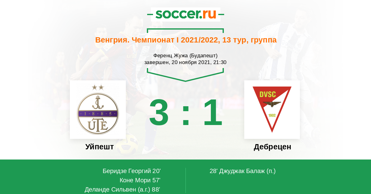 Уйпешт - Дебрецен: обзор матча 20 ноября 2021