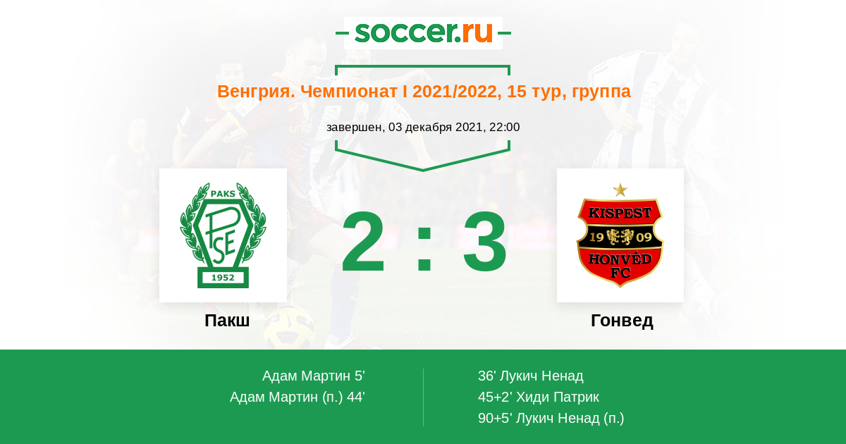 Пакш - Гонвед: обзор матча 3 декабря 2021
