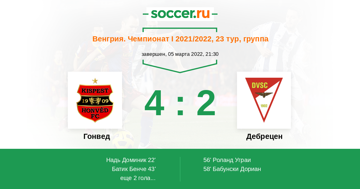 Гонвед - Дебрецен: обзор матча 5 марта 2022
