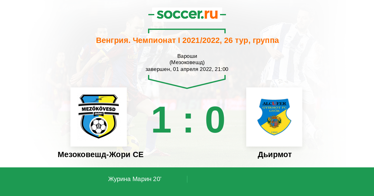 Мезоковешд-Жори СЕ - Дьирмот: обзор матча 1 апреля 2022