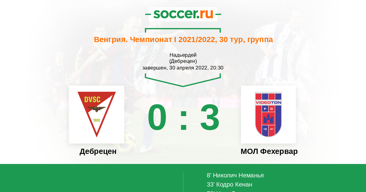 Дебрецен - МОЛ Фехервар: обзор матча 30 апреля 2022
