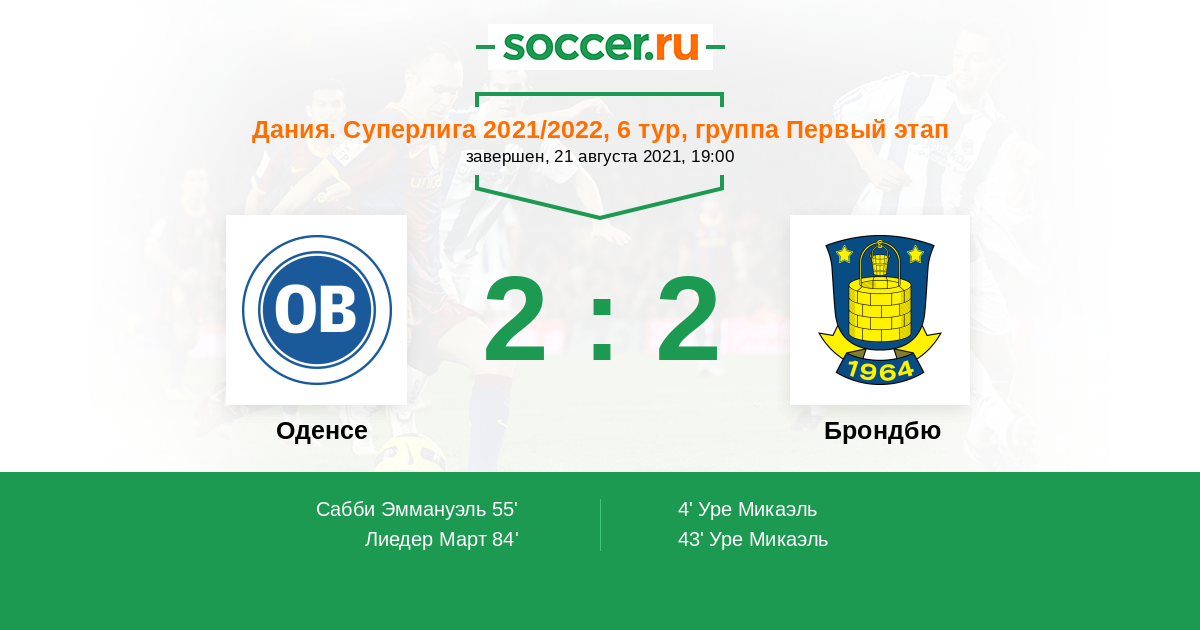 Оденсе - Брондбю: обзор матча 21 августа 2021