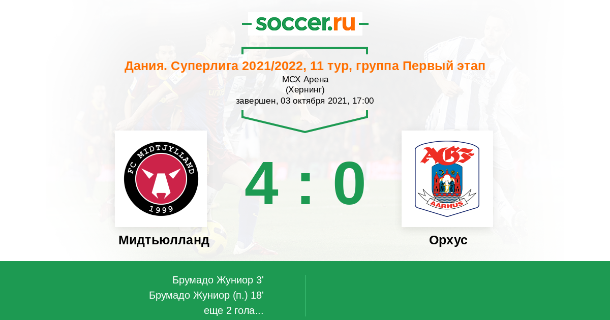 Мидтьюлланд - Орхус: обзор матча 3 октября 2021