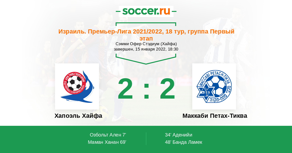 Хапоэль Хайфа - Маккаби Петах-Тиква: обзор матча 15 января 2022