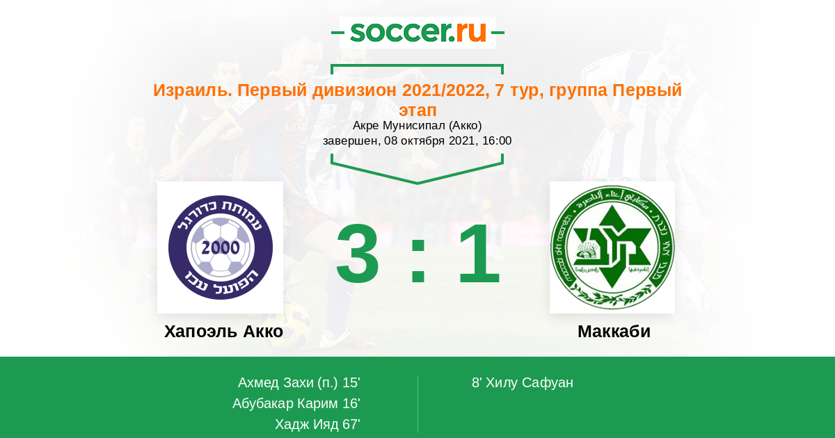 Хапоэль Акко - Маккаби: обзор матча 8 октября 2021
