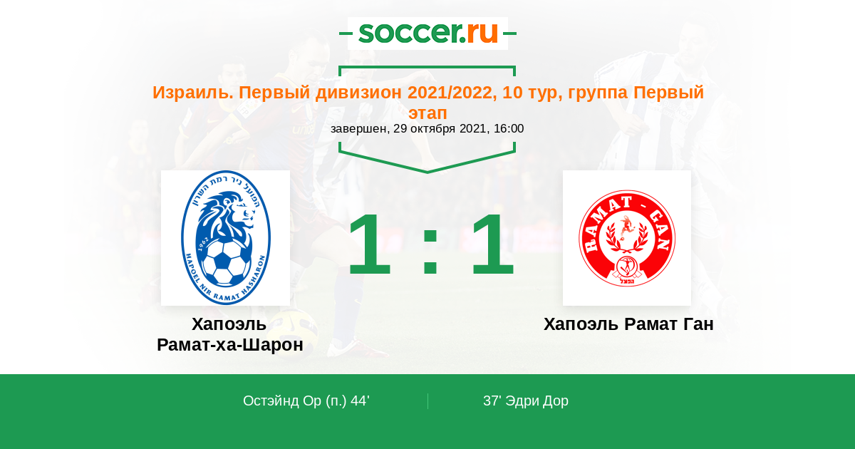 Хапоэль Рамат-ха-Шарон - Хапоэль Рамат Ган: обзор матча 29 октября 2021