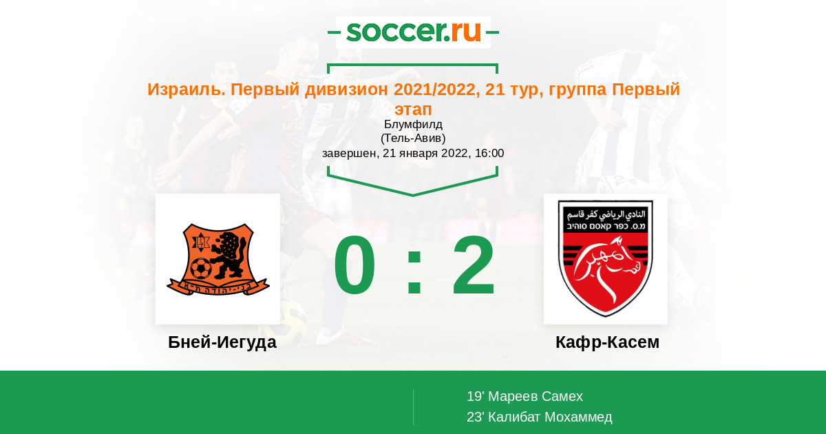 Бней-Иегуда - Кафр-Касем: обзор матча 21 января 2022