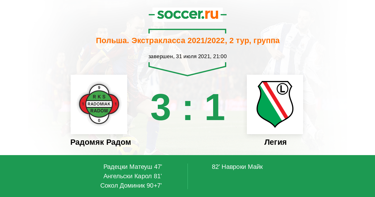Радомяк Радом - Легия: обзор матча 31 июля 2021