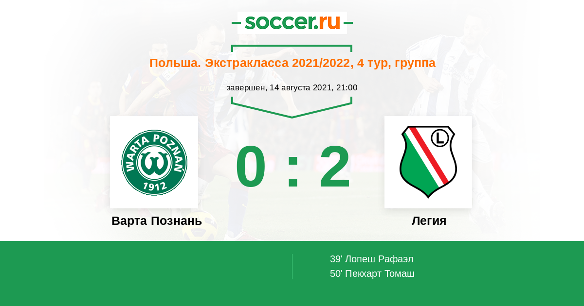 Варта Познань - Легия: обзор матча 14 августа 2021