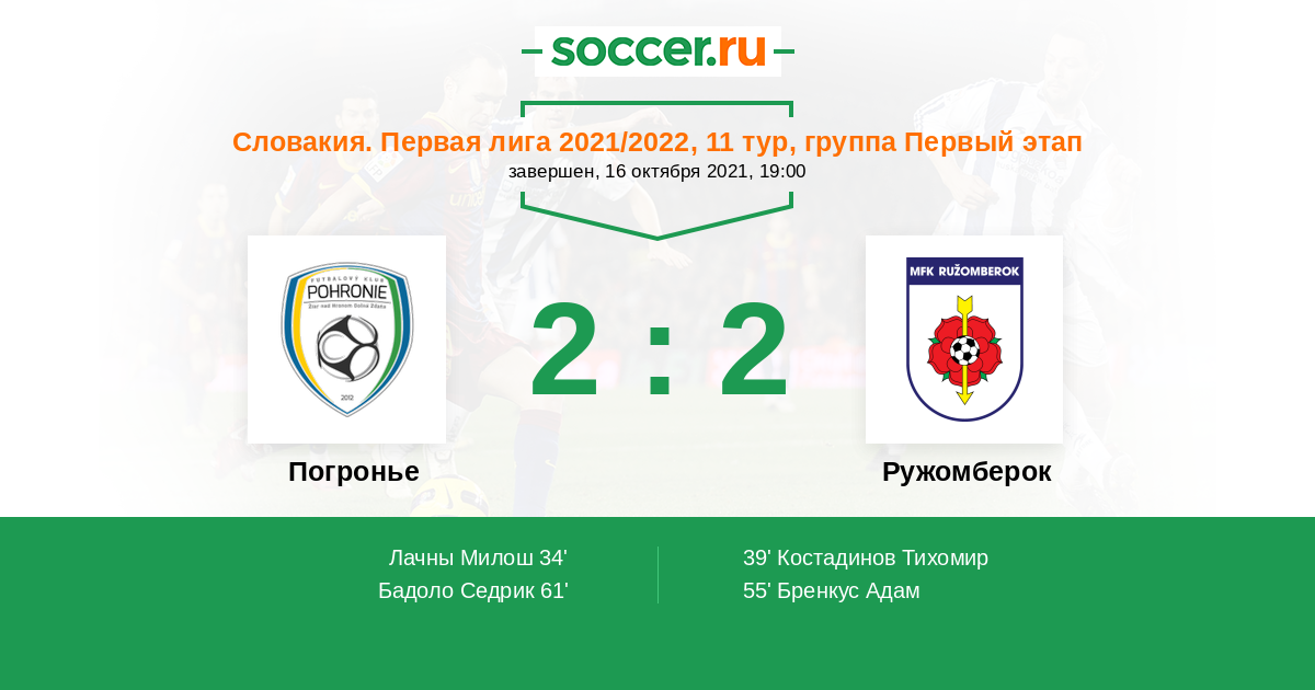 Погронье - Ружомберок: обзор матча 16 октября 2021