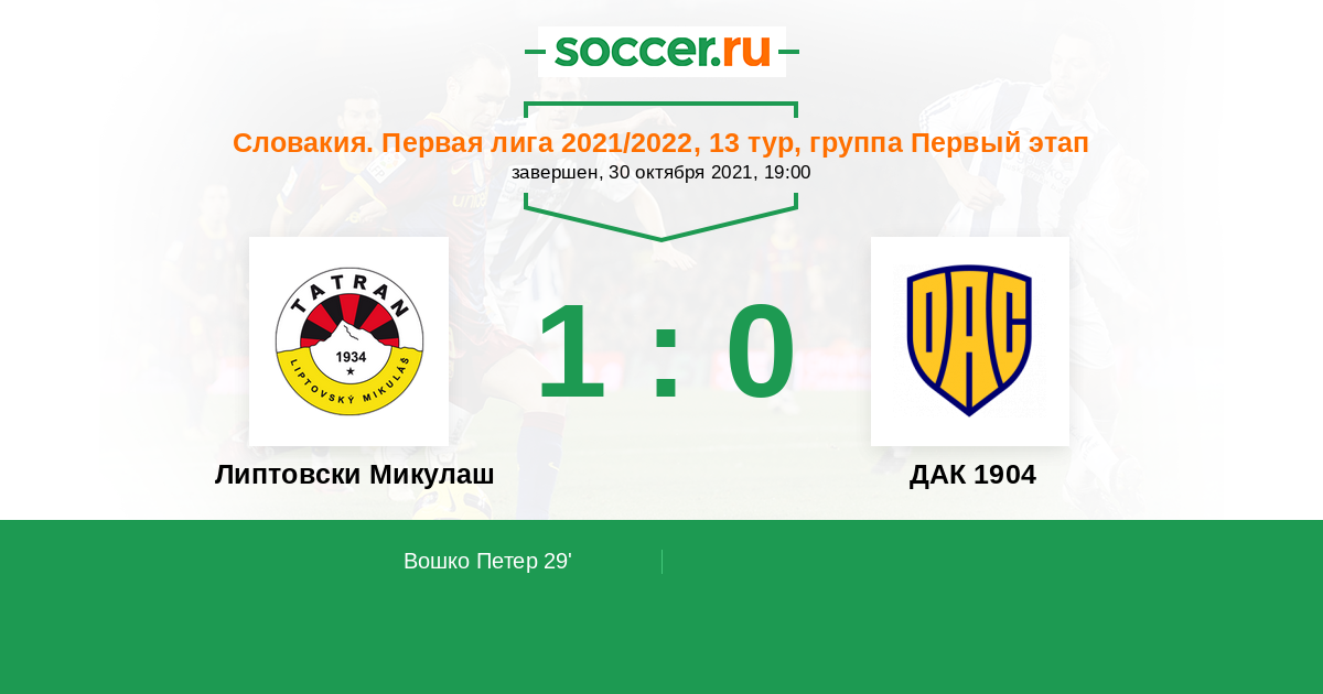 Липтовски Микулаш - ДАК 1904: обзор матча 30 октября 2021