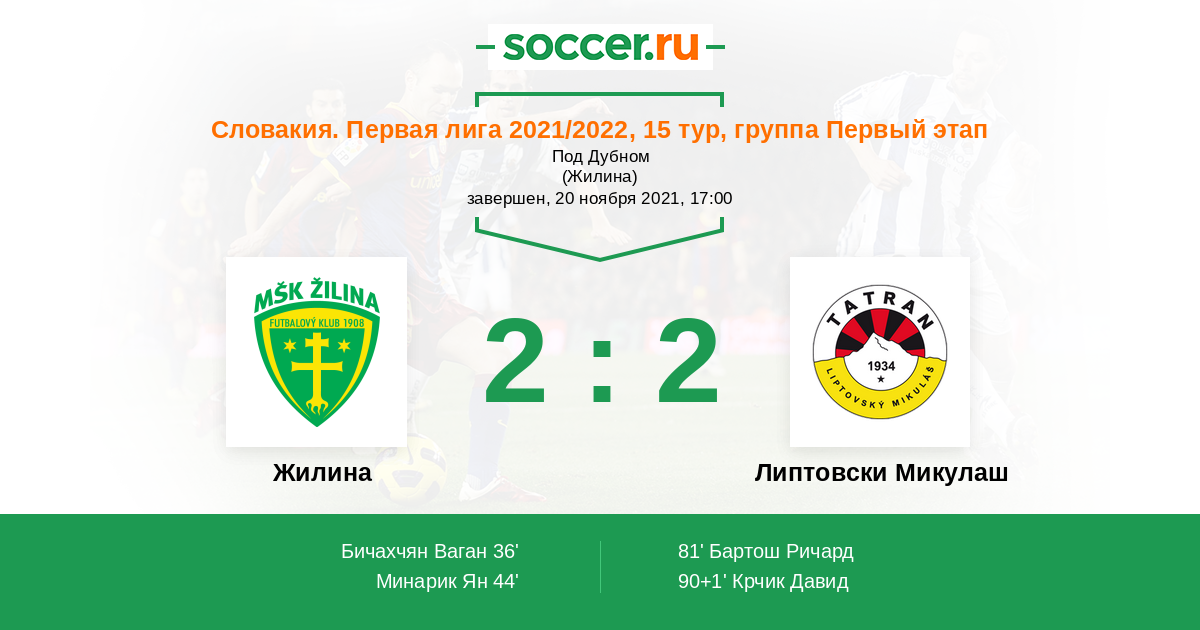 Жилина - Липтовски Микулаш: обзор матча 20 ноября 2021