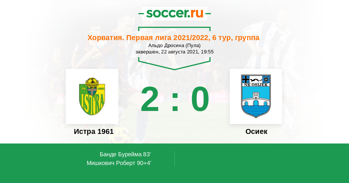 Истра 1961 - Осиек: обзор матча 22 августа 2021