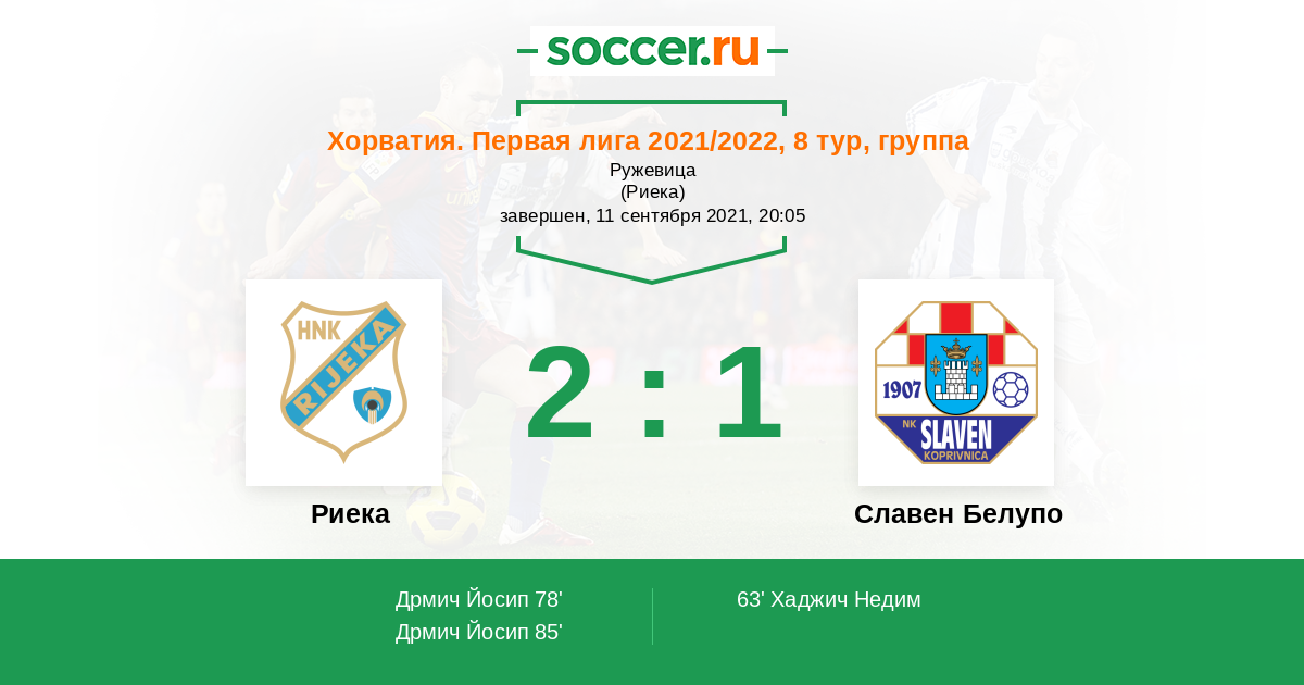 Риека - Славен Белупо: обзор матча 11 сентября 2021